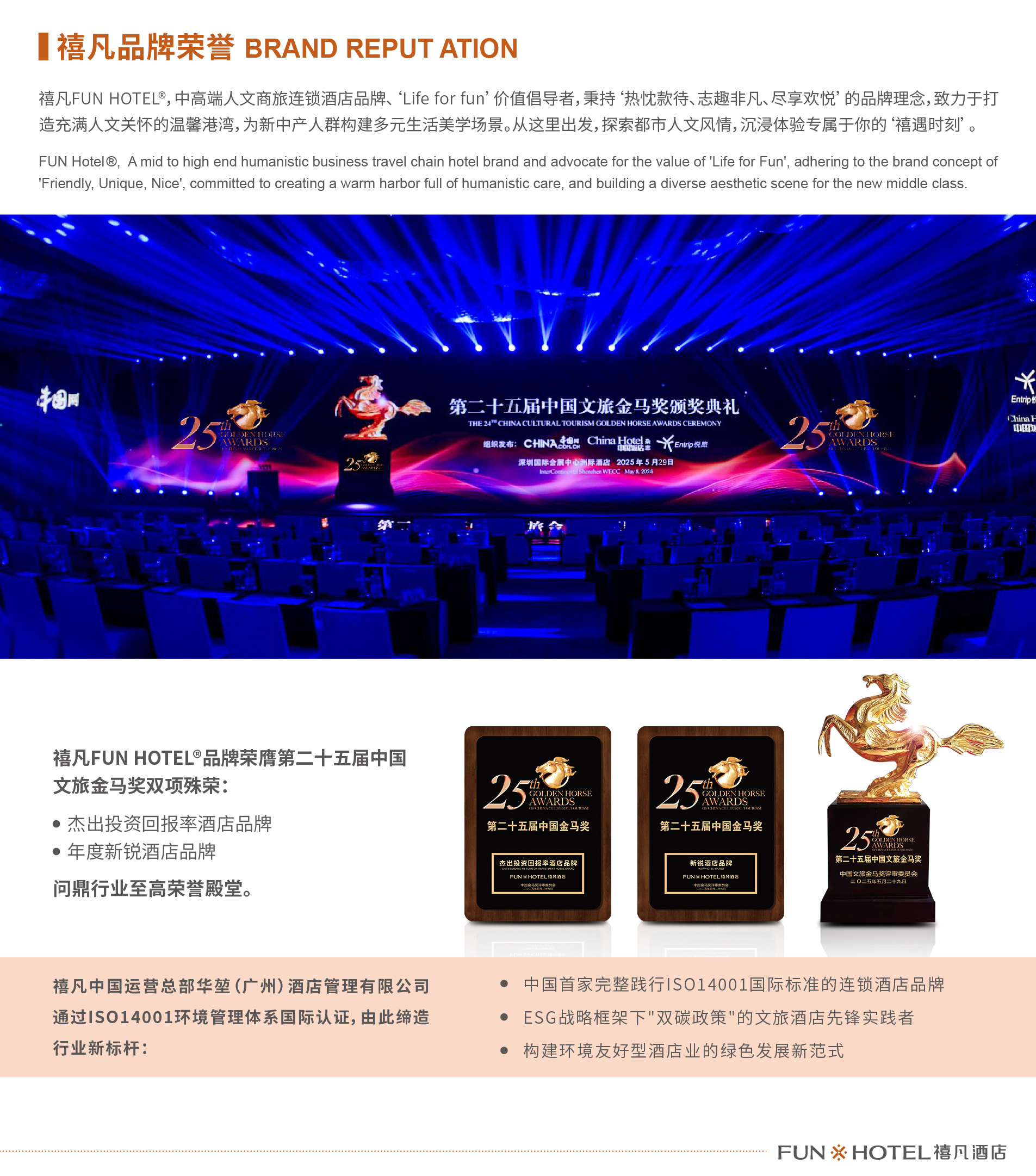 FUN HOTEL华堃禧凡,中高端人文商旅连锁酒店品牌、“Life for fun”价值倡导者,秉持“热忱款待、志趣非凡、尽享欢悦”的品牌理念,致力于打造充满人文关怀的温馨港湾,为新中产人群构建多元生活美学场景。从这里出发,探索都市人文风情,沉浸体验专属于你的“禧遇时刻”。